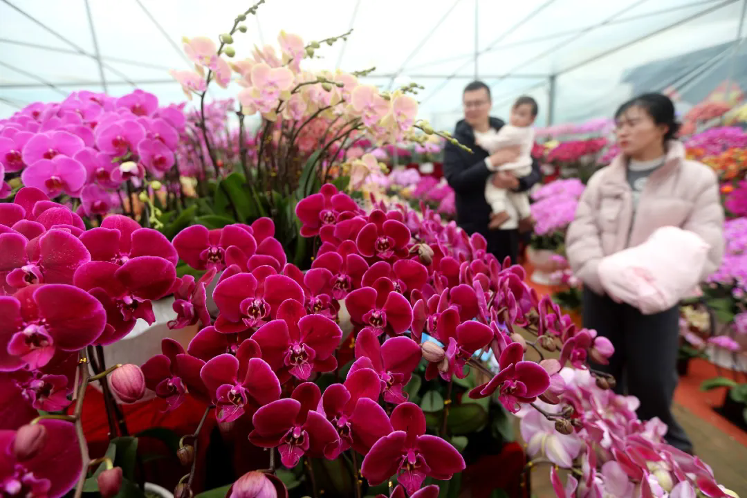 科技赋能下的“设施革命”——产业的现代化水平,最终直观体现在生产设施上。在山东省青州市花飞舞花卉有限公司的智能温室里,物联网传感器实时监测着温湿度,水肥一体化系统精准供给养分,潮汐灌溉装置自动运行,一排排蝴蝶兰在理想环境中整齐生长。公司总经理孟凡漪表示:“智能设施投入虽大,但实现了全年稳定生产,不同生长阶段的花卉可以同步调控,让我们能精准对接市场需求,每亩效益比传统大棚高出至少50%。”